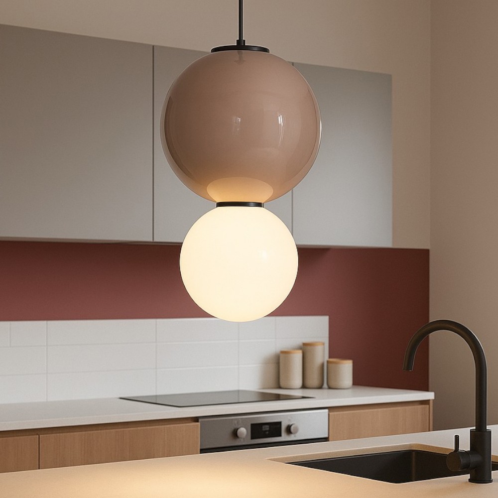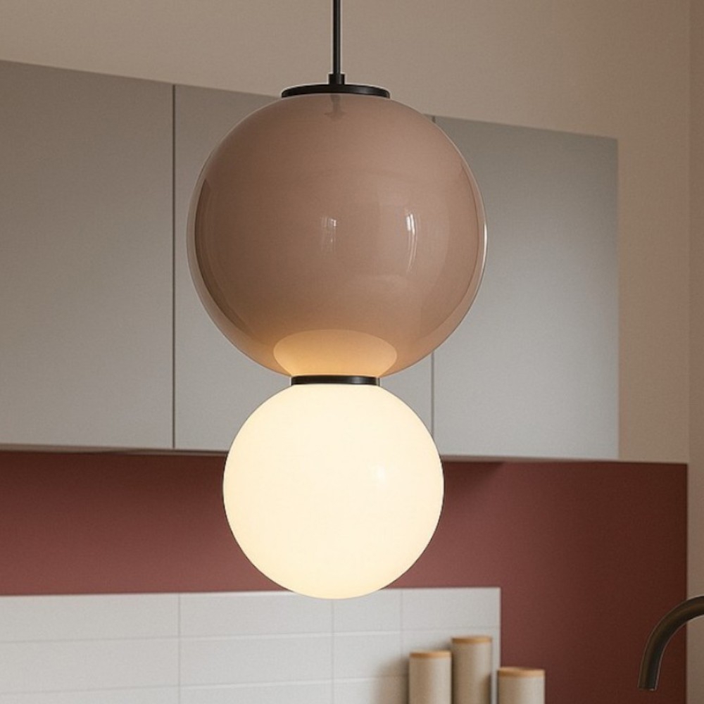 Lampada a sospensione per isola cucina con 2 sfere 25 cm led 3000k