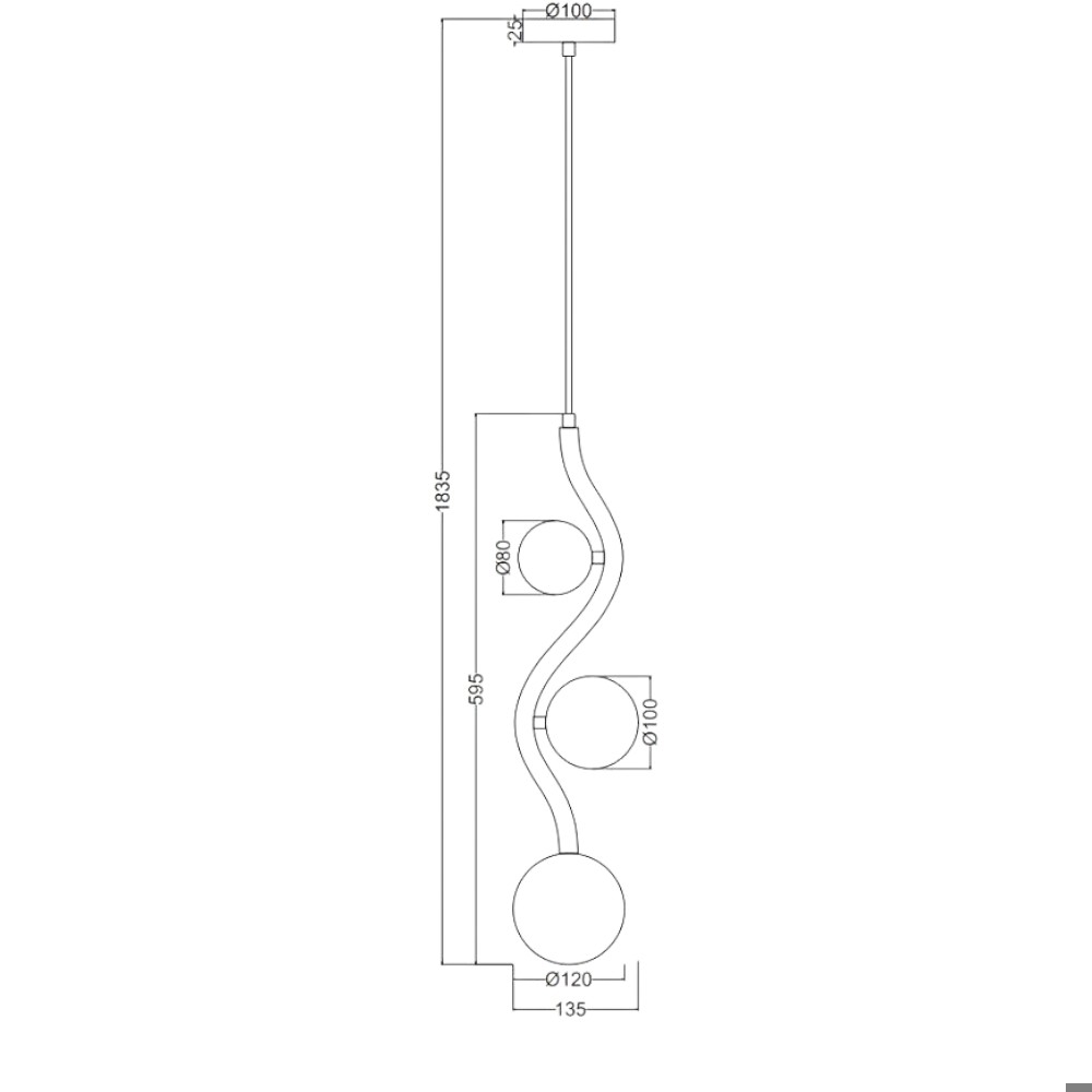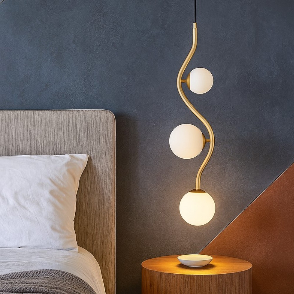 Lampadario 3 luci pendenti da camera da letto sfere vetro cromo oro rame