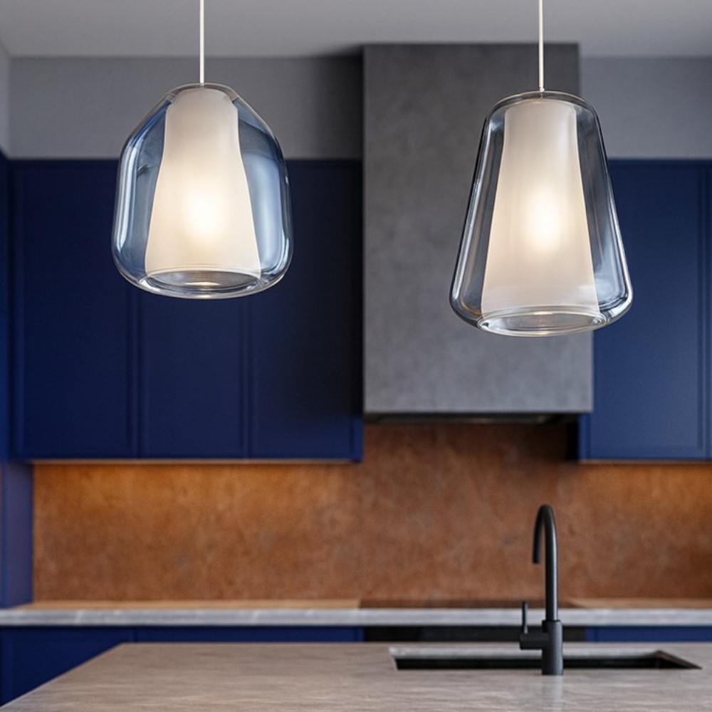 Lampadario per cucina moderna led 3000k paralumi vetro ambrato