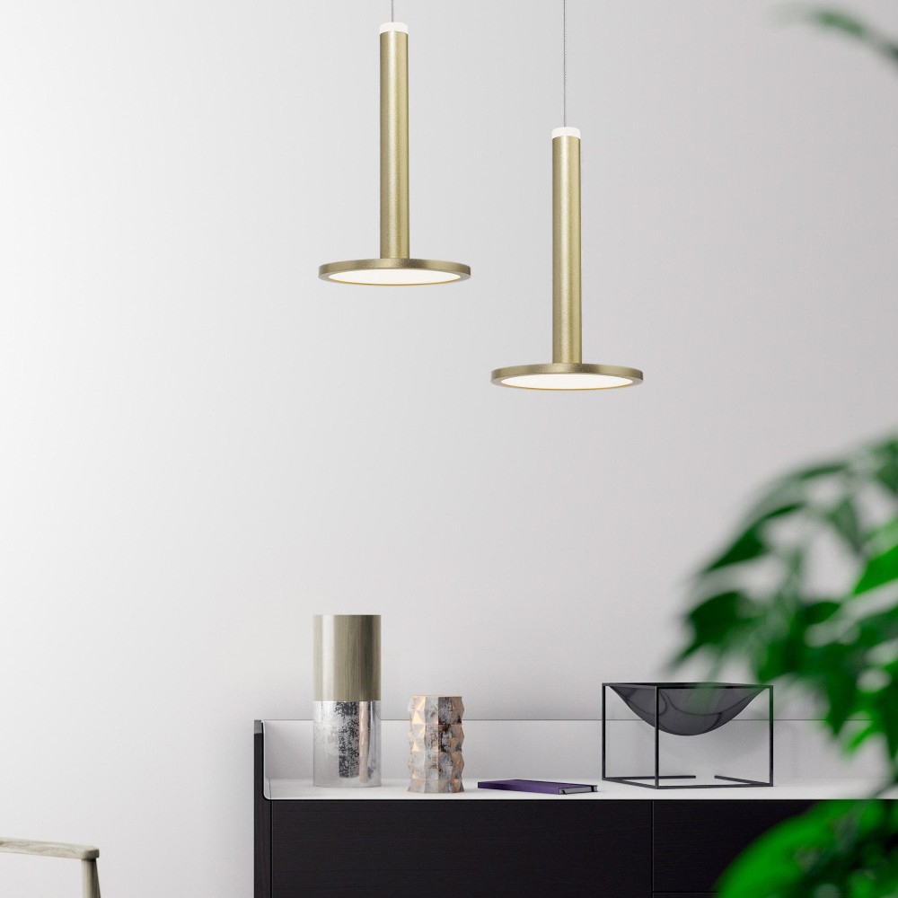 Lampada a sospensione led 11w 3000k moderna disco alluminio