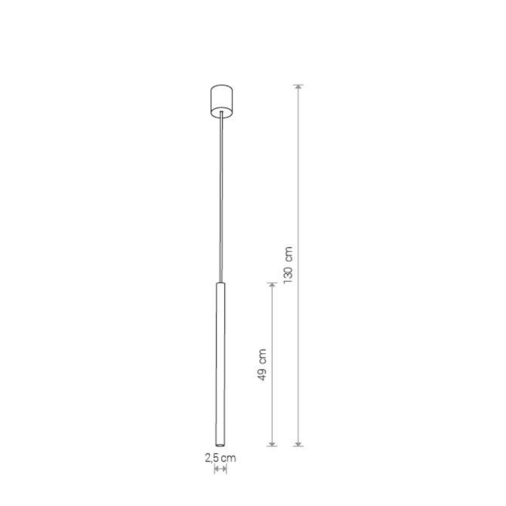 Questa lampada a sospensione cilindrica in metallo alluminio è la scelta perfetta per ambienti moderni grazie al suo design minimalista e alle linee pulite. Disponibile in bianco, nero o ottone satinato, è ideale per l’illuminazione diretta di isole, penisole o banconi. Con un diametro di soli 2,5 cm e una lunghezza di 49 cm, si caratterizza per la sottigliezza e l’eleganza. Il portalampada G9 rientrato, non visibile dall'esterno, permette l'utilizzo di lampadine LED fino a 8W (non incluse), offrendo la possibilità di personalizzare il colore della luce. Il cavo nero regolabile consente di adattare facilmente l'altezza fino a 130 cm, rendendola estremamente versatile per diverse configurazioni.