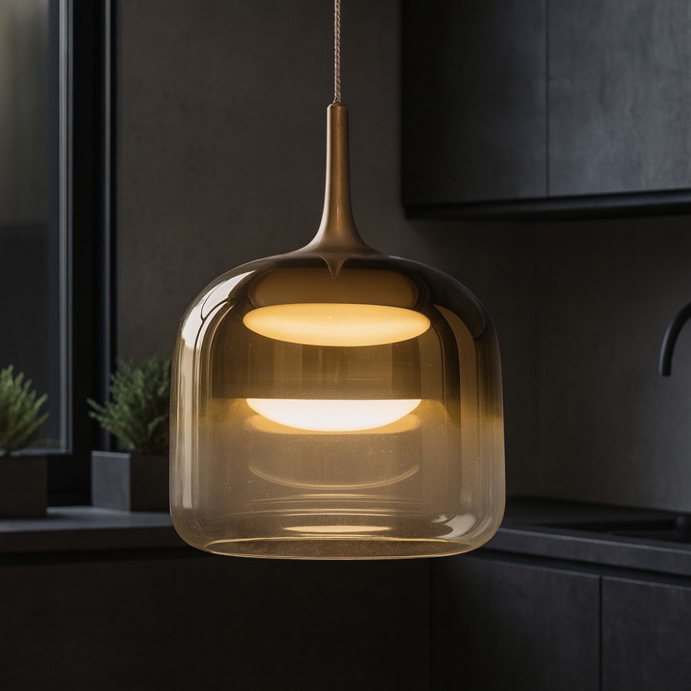 Lampada a sospensione per camera da letto con dettagli colore oro