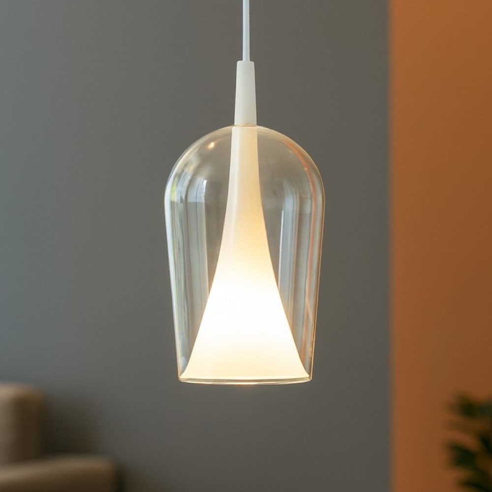 Gea luce cleofe lampada a sospensione vetro bianco opale
