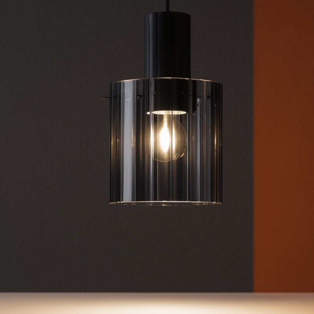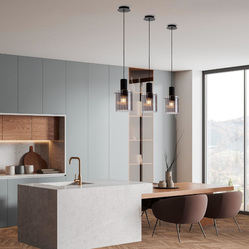 Lampadario moderno 3 luci nero vetri fume per soggiorno