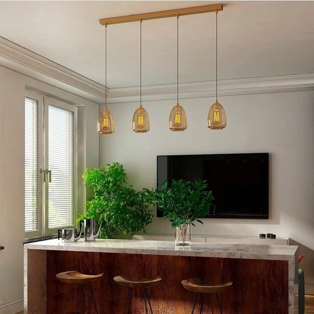 Lampadario moderno per sfere ambra oro cromo trasparente