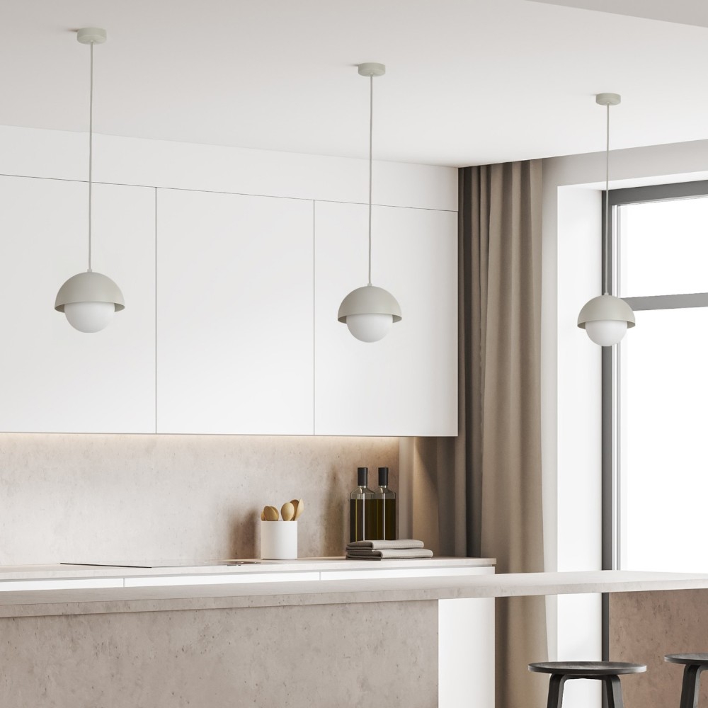 Lampadario per isola penisola cucina beige a cupola 27 cm cavi regolabili