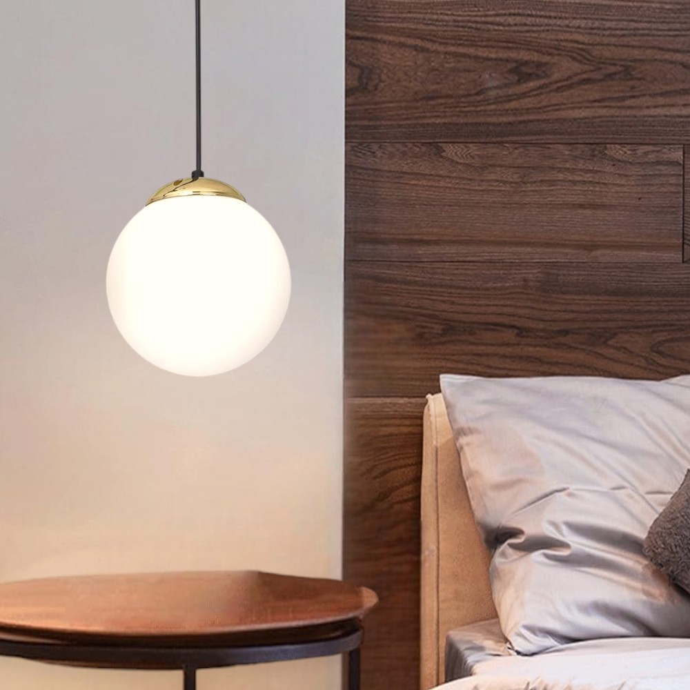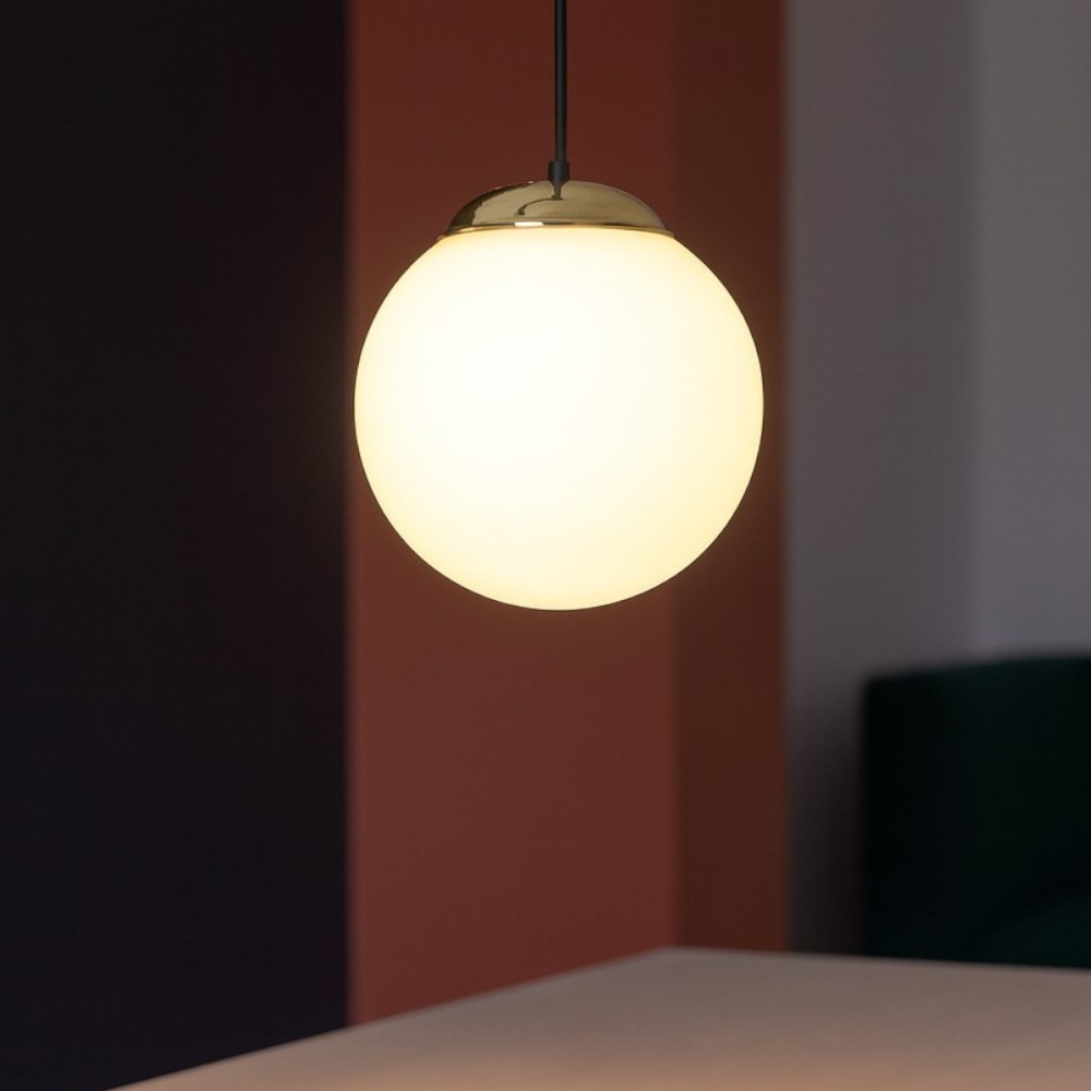 Lampada a sospensione sfera di vetro ambra bowl perenz illuminazione