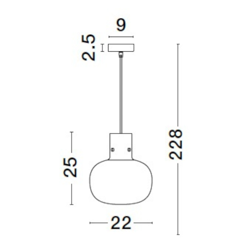 salve, in scheda tecnica trova già 3 valori: Altezza massima: 228 cm Altezza vetro: 25 cm e rosone alto 2.5cm quindi il cavo è lungo 205cm. Il cavo può anche essere accorciato a piacimento ma non è possibile scostarla più di tanto dalla aprete perché non è previsto un braccetto distanziatore.