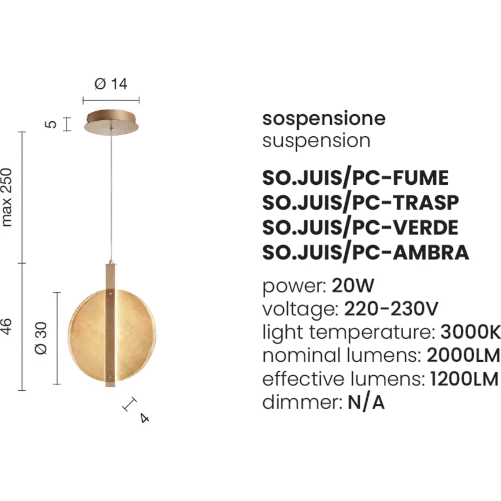 Lampada a sospensione disco trasparente ondaluce juis led 20w 3000k