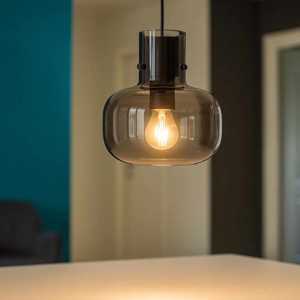 Toplight lampada a sospensione boccia sfera di vetro fume trasparente 25cm