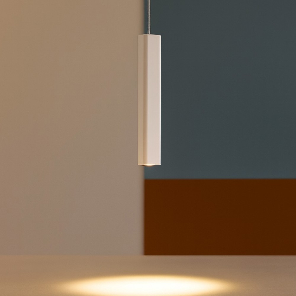 Prodotta in alluminio verniciato, questa lampada include il driver per alimentare la sorgente luminosa e offre un’installazione semplice grazie al sistema di fissaggio con tasselli e viti. Con una lunghezza del cavo regolabile fino a 1,3 metri, è facile adattarla a diverse esigenze di altezza e spazi. Una soluzione pratica e decorativa per ambienti moderni o minimalisti.