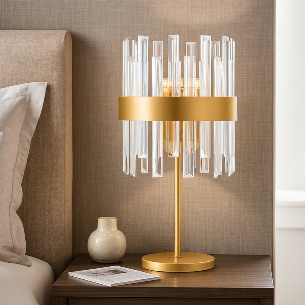 Lampada da comodino abat-jour cristallo trasparente fp
