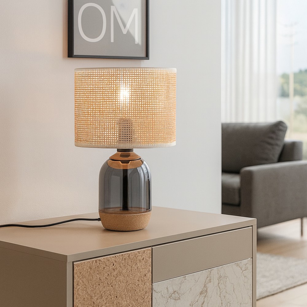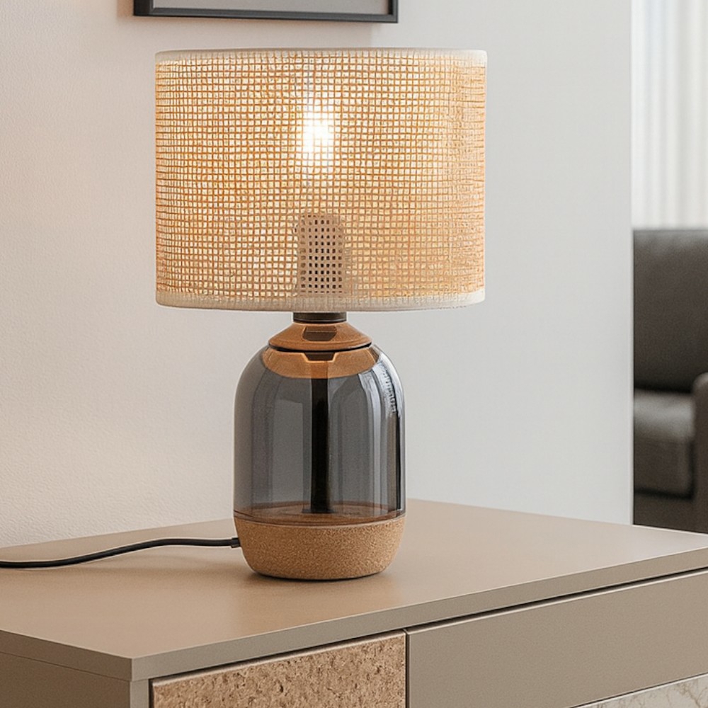 Abat-jour per camera da letto paralume vimini vetro fume e27 h32