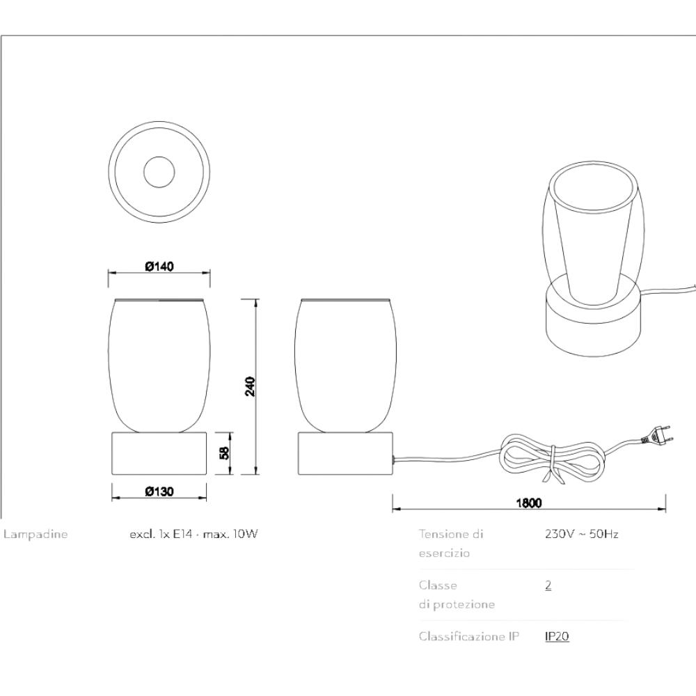 Mikado miloox abat-jour lampada da comodino nera sfera vetro dimmerabile