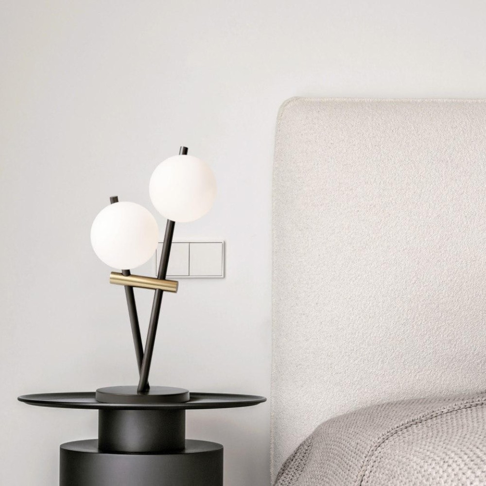 Lampadario soggiorno moderno nero e oro 6 sfere bianche miloox kika