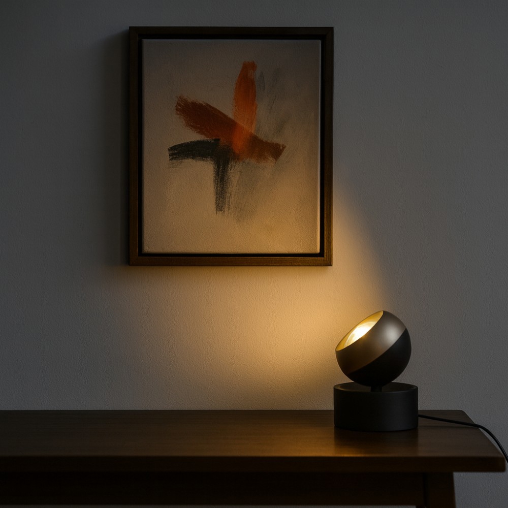 Lampada da tavolo per quadro orientabile sfera nichel nero