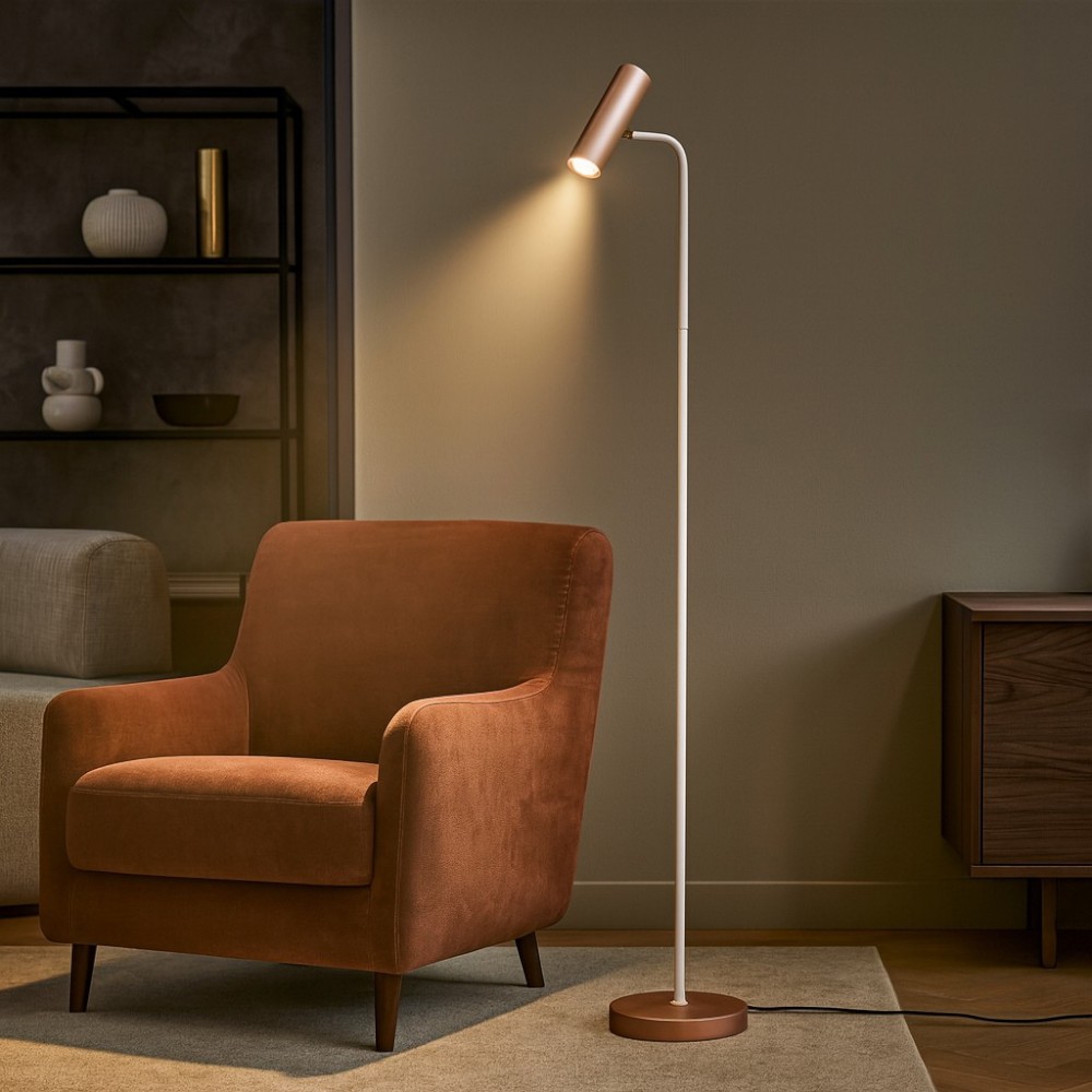 Lampada da terra oro per salotto paralume bianca stile contemporaneo