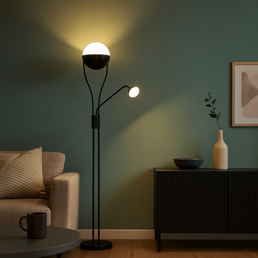 Piantana design moderna led 32w 3000k nera eglo lasana