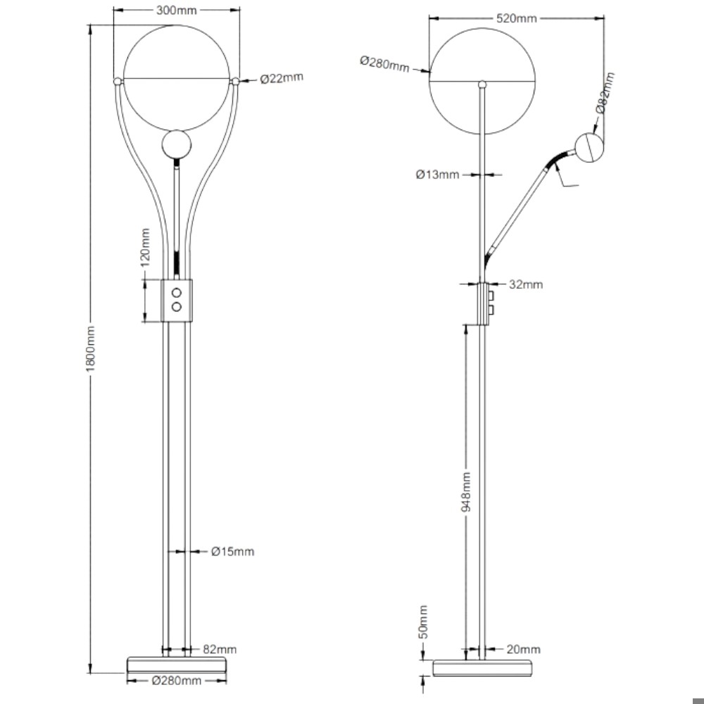 Lampada da terra 30w 3000k nera parabola orientabile dimmerabile