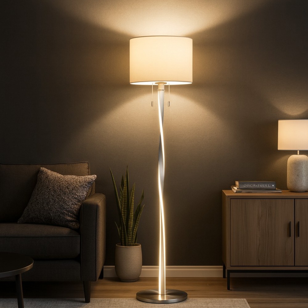 Piantana LED dal design moderno e minimalista, perfetta per chi cerca un elemento d’arredo funzionale e raffinato. Il suo stelo in alluminio, sinuoso ed elegante, aggiunge un tocco scultoreo agli spazi, mentre il paralume in tessuto bianco cilindrico diffonde una luce morbida e avvolgente. Grazie alla doppia illuminazione, questa piantana offre una soluzione versatile: le sorgenti LED integrate garantiscono un’illuminazione uniforme da 1200 lumen (3000K), mentre il portalampada E27, compatibile con lampadine LED fino a 25W (non inclusa), permette di personalizzare ulteriormente l’atmosfera, ideale per la lettura o momenti di relax. Perfetta per soggiorni, camere da letto o angoli lettura.