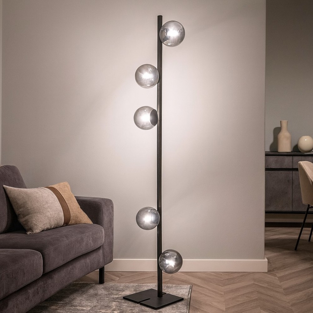 Ondaluce monile 5 lampadario nero moderno sfere di vetro