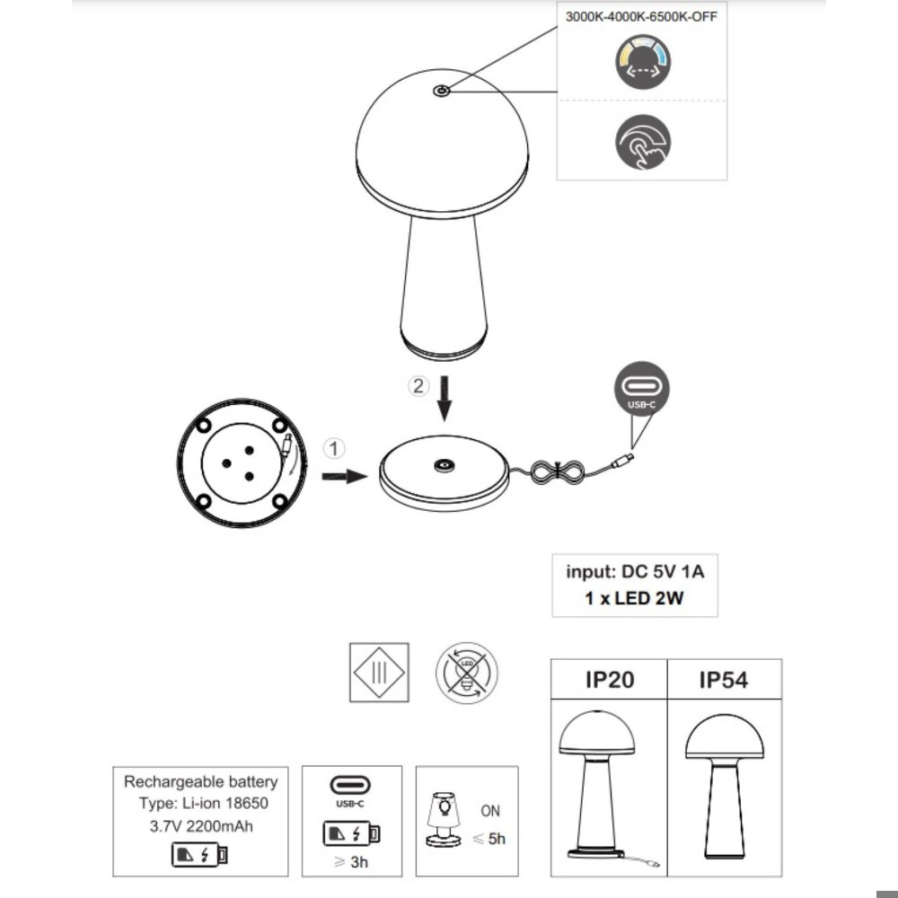 Lampada da esterno salvia da tavolo senza fili led 3w 3000k lt moon ondaluce fp