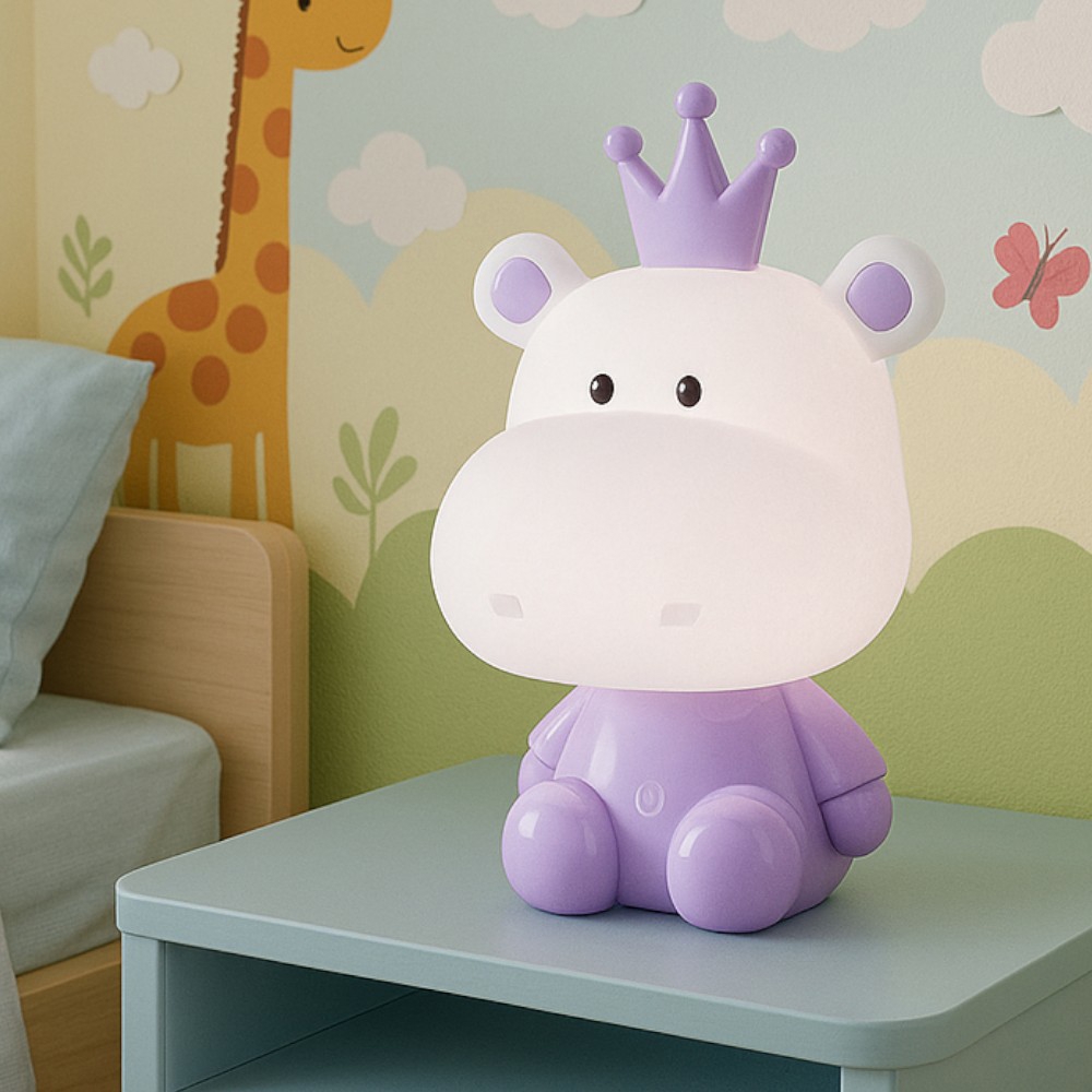 Lampada maialino porpora luce da comodino per cameretta bambina