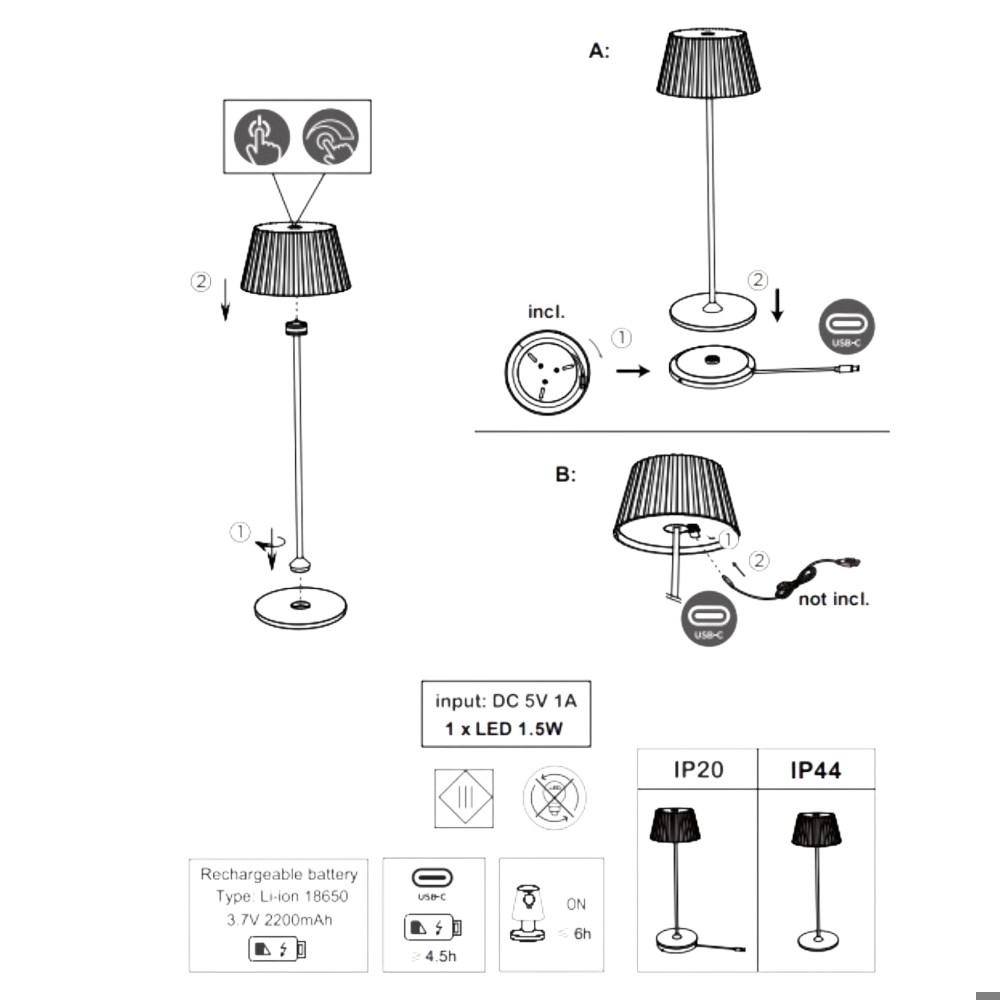 Lampada da tavolo per esterno senza fili ricaricabile nera moderna