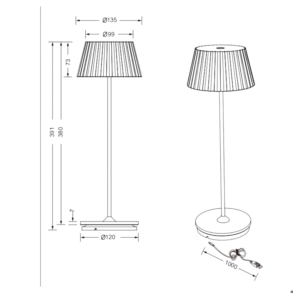 Lampada da tavolo per esterno senza fili bianca led ricaricabile
