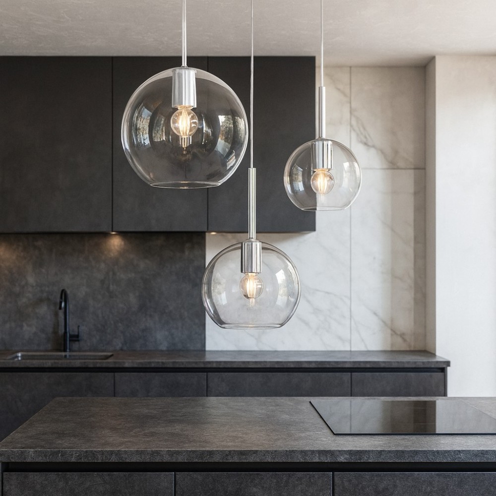 Lampada a sospensione per penisola cucina vetro trasparente
