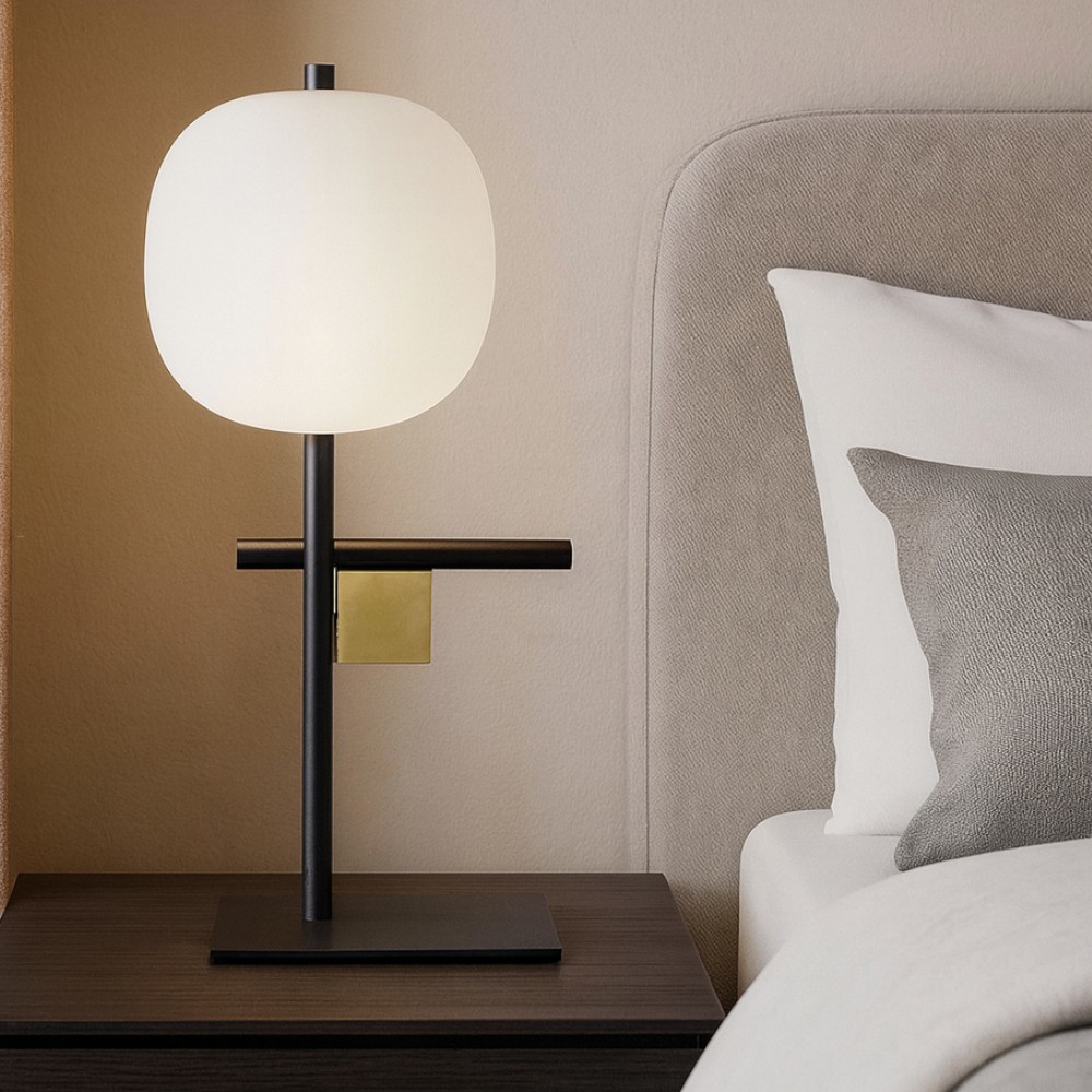 Lingotto miloox lampada da tavolo nero oro sfere vetro bianco