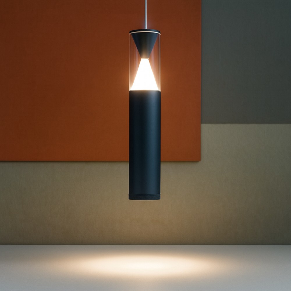 Filo ondaluce lampada a sospensione cilindro nero per isola cucina