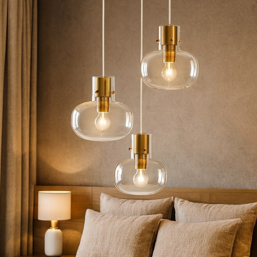 Lampadario da comodino pendente per camera da letto sfere oro