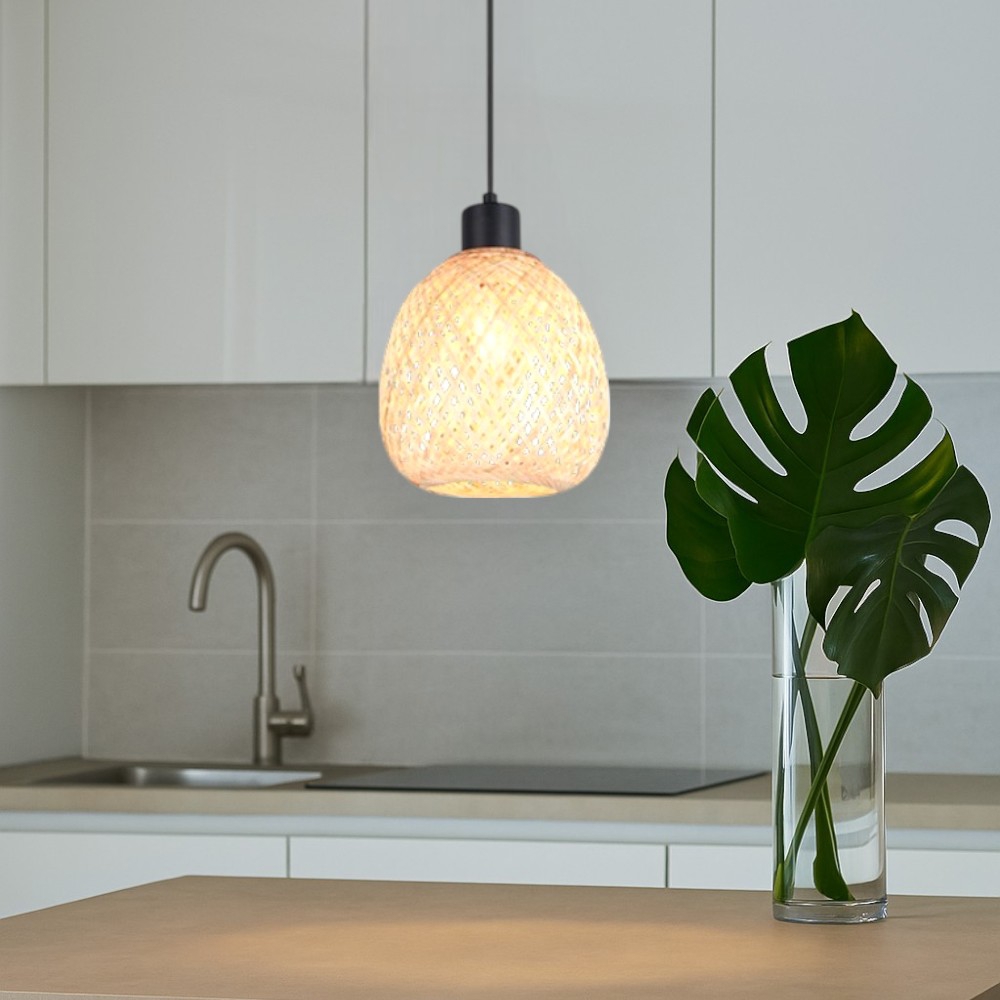 Lampada a sospensione per isola cucina boccia vetro ambra