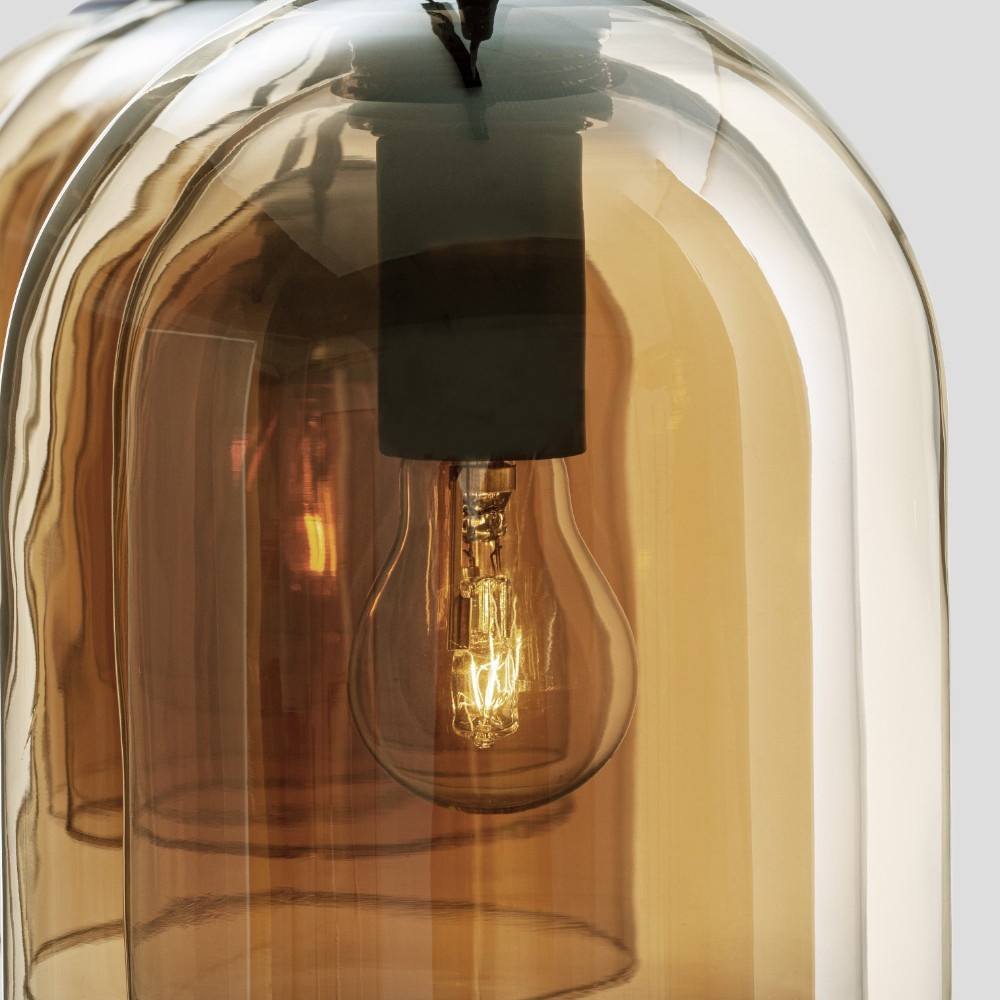 Lampada a sospensione doppio vetro ambra trasparente per isola cucina