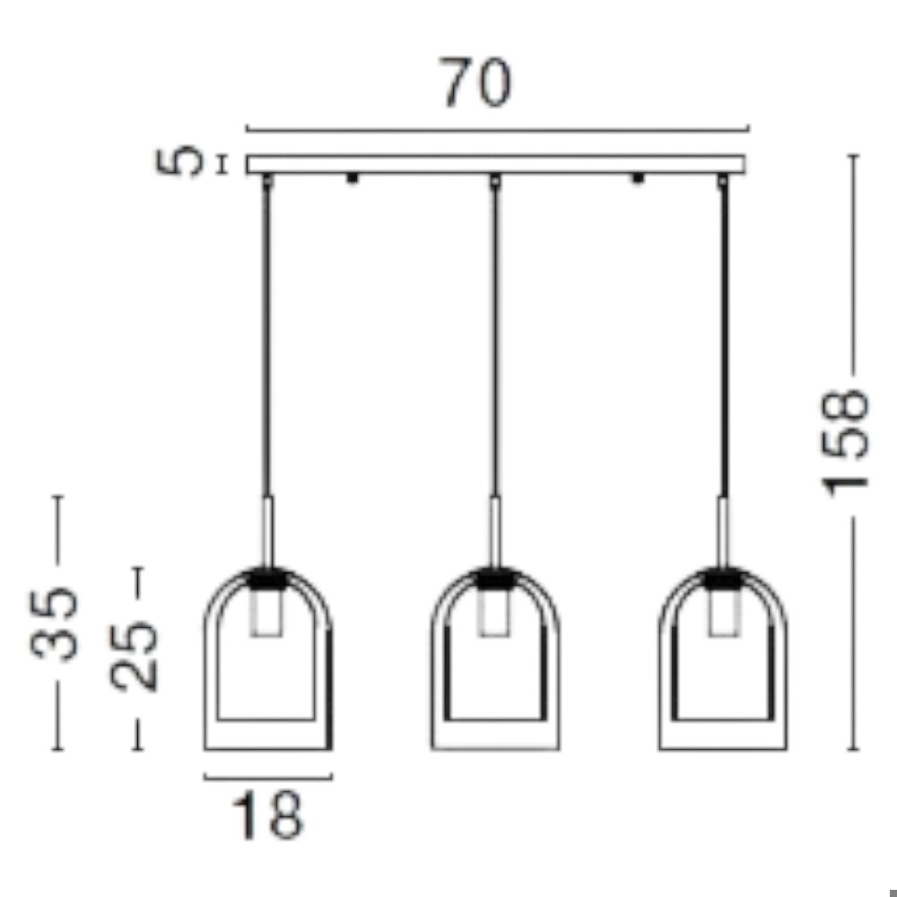 Lampadario per tavolo da cucina 3 vetri fume pendenti