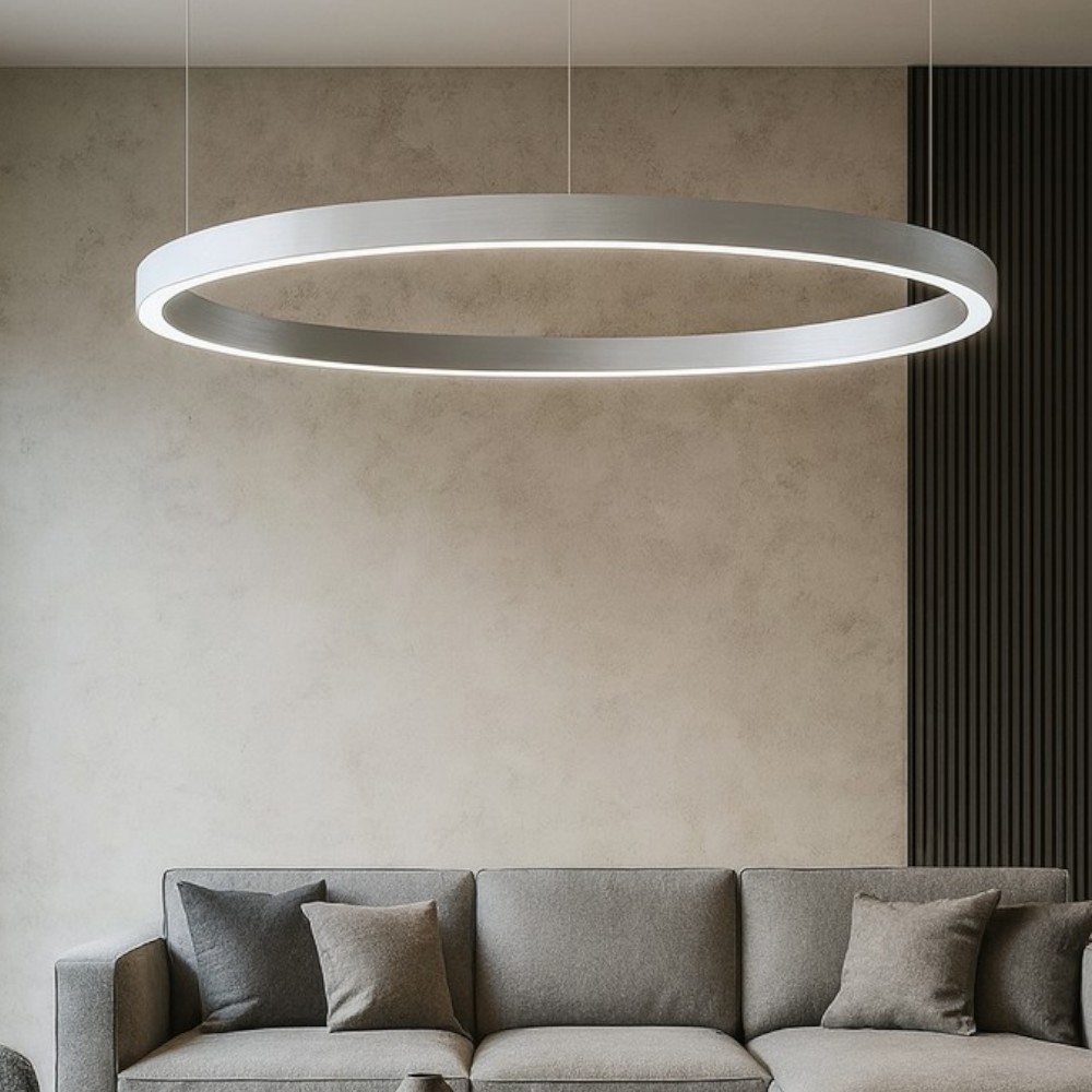 Lampadario cerchio grigio 60cm led biemissione 60w 3000k dimmerabile