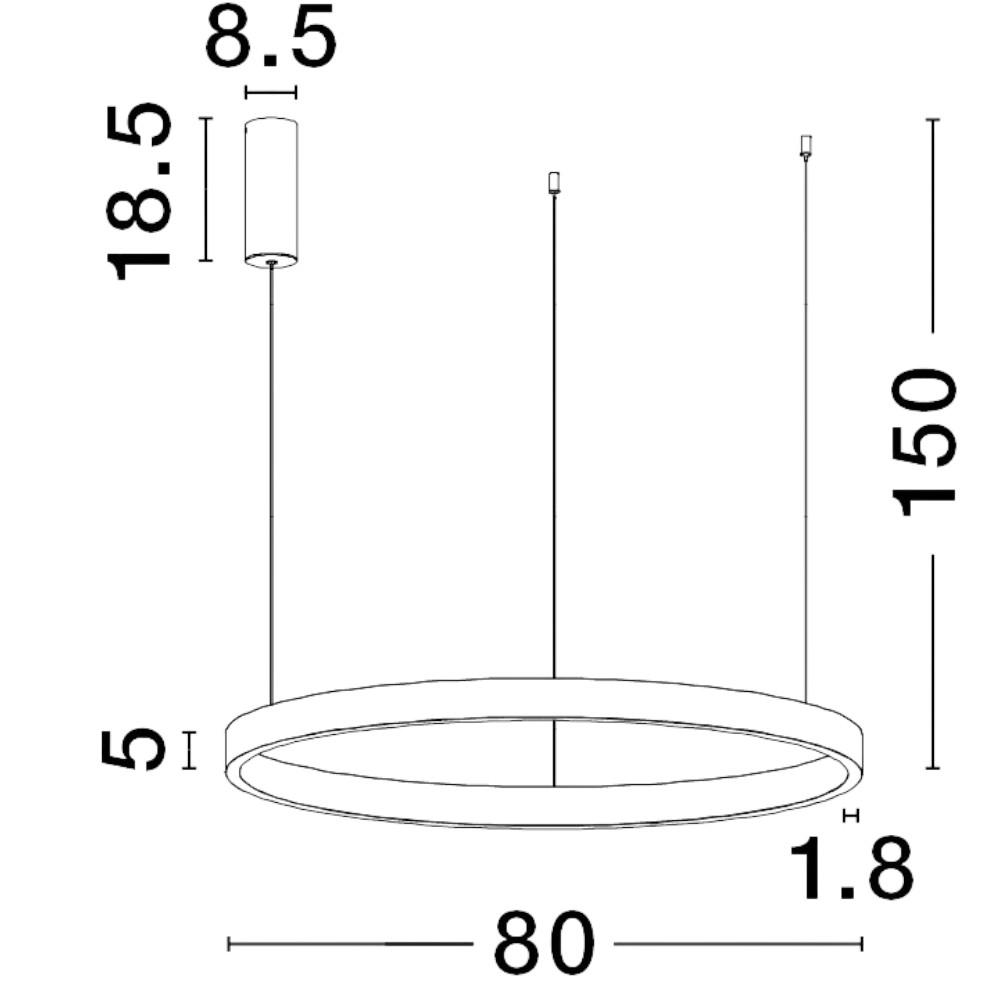 Lampadario cerchio grigio 98cm led biemissione 106w 3000k