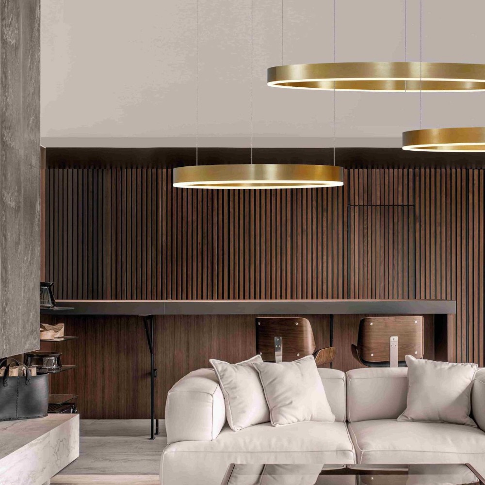 Lampadari moderni per soggiorno cerchi oro led 140w 3000k dimmerabile