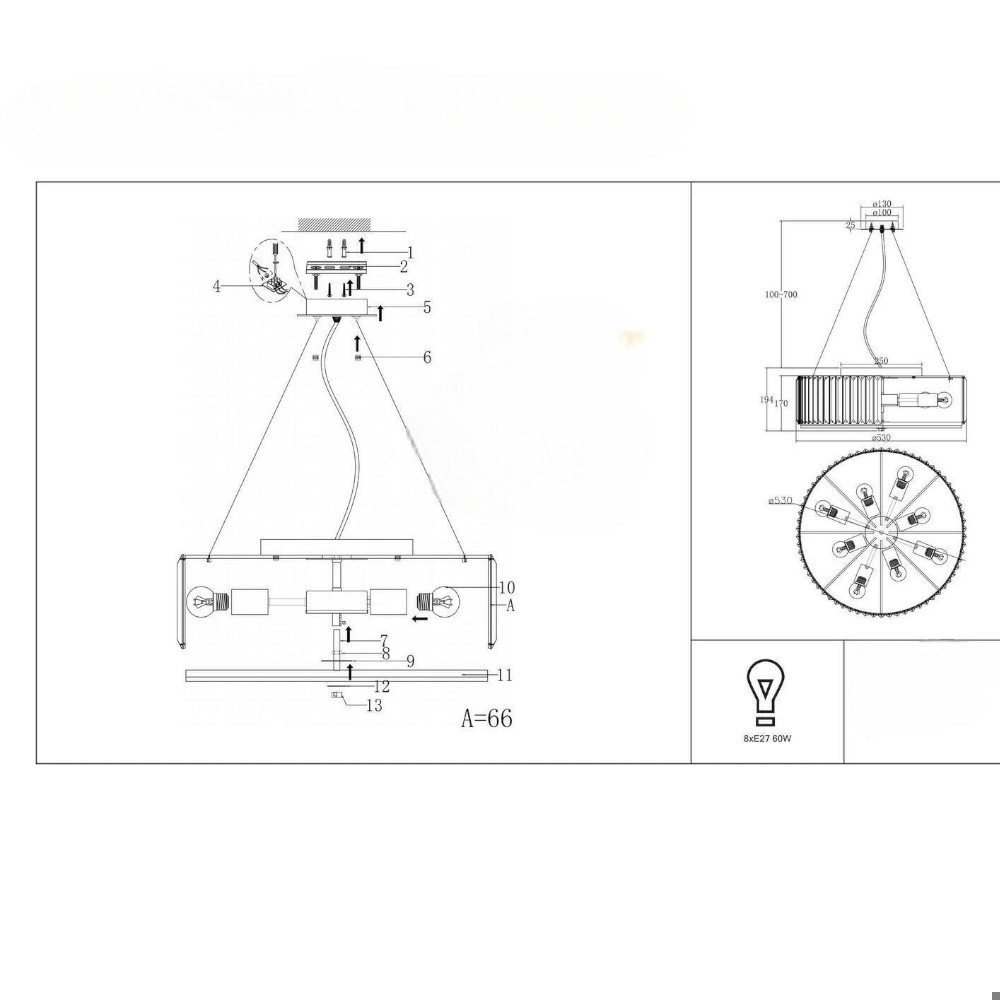 Hurricane vivida lampadario moderno led 60w 3000k dimmerabile