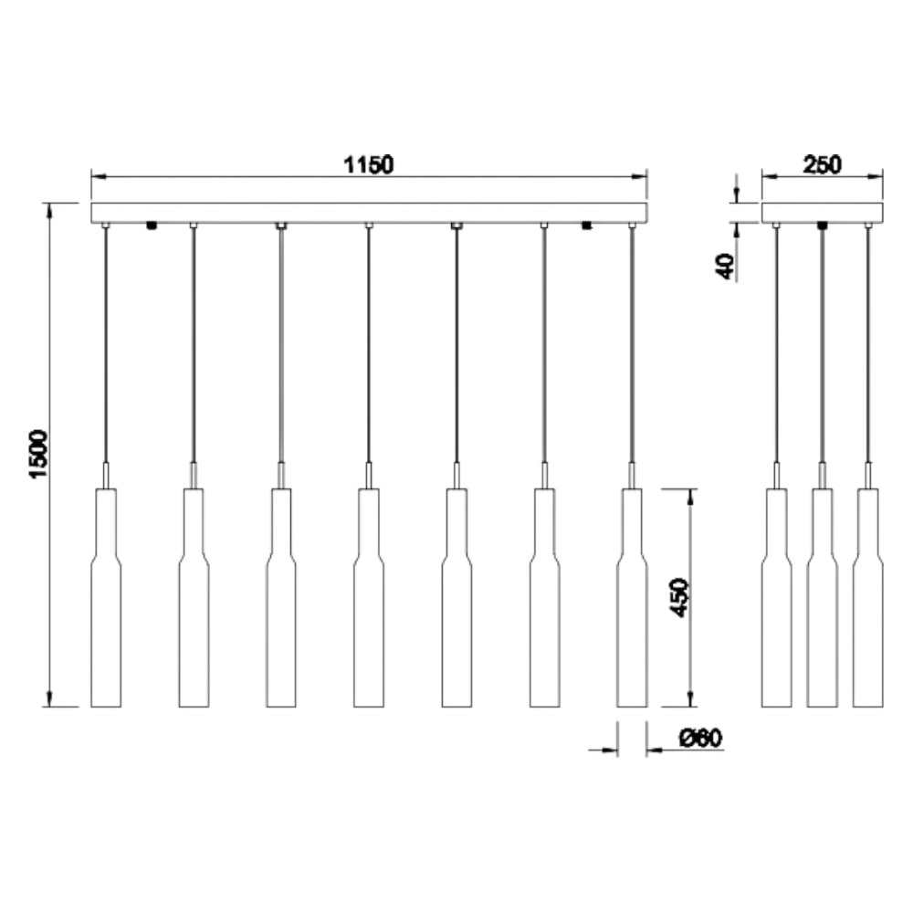 Lampadario orizzontale titanio per tavolo cucina led 36w cct vivida segmento