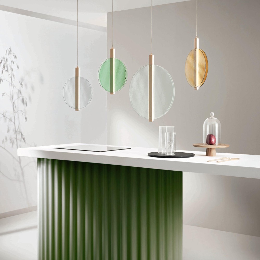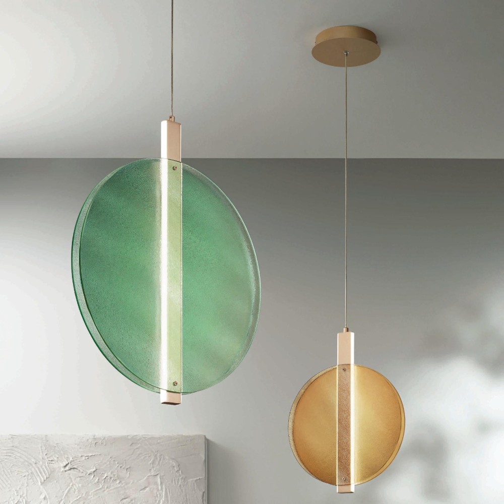 Lampada a sospensione oro con vetri stile contemporaneo