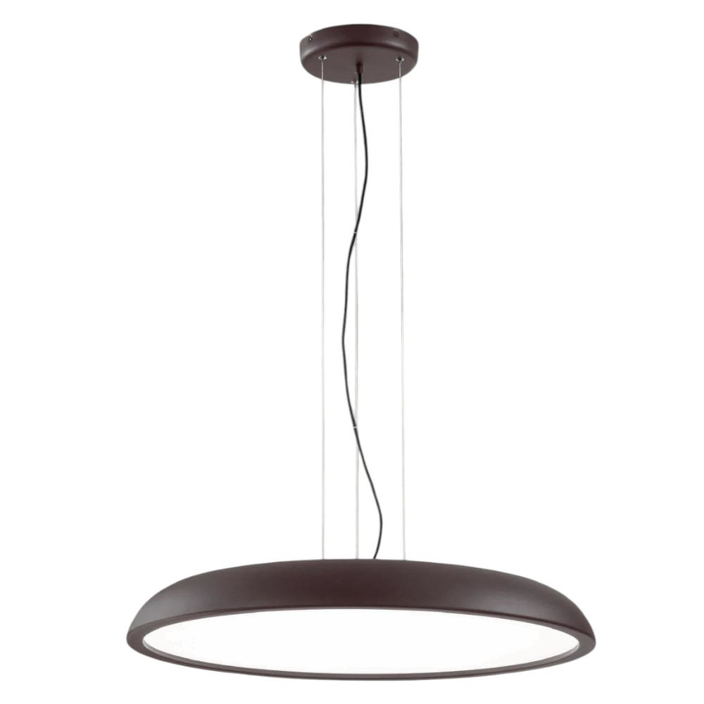 Pensato per ambienti eleganti che ricercano equilibrio tra design e funzionalità, questo lampadario da cucina della collezione Zenal di Isyluce si distingue per la finitura marrone caffè, calda e sofisticata. Il corpo in alluminio dal profilo piatto e circolare, con diametro di 80 cm, ospita un LED integrato da 108W, capace di illuminare in modo uniforme ampie superfici. L’altezza regolabile fino a 85 cm ne consente un’installazione versatile, ideale sopra tavoli da pranzo o isole cucina. Il sistema CCT permette di scegliere tra luce calda (3000K) e fredda (4000K), mentre la funzione dimmer integrata consente di modulare l’intensità luminosa in base alle esigenze quotidiane, creando atmosfere accoglienti e rilassanti.