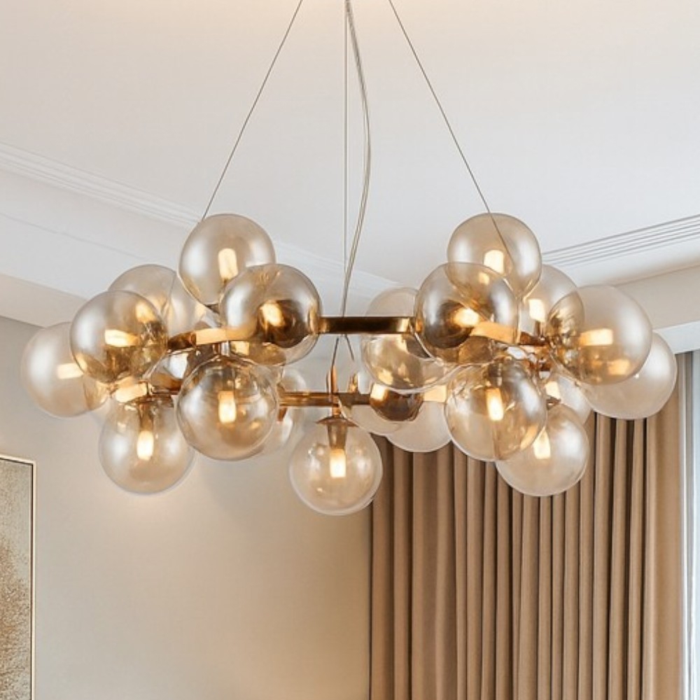 Maytoni plafoniera oro per soggiorno sfere vetro ambra trasparente dallas