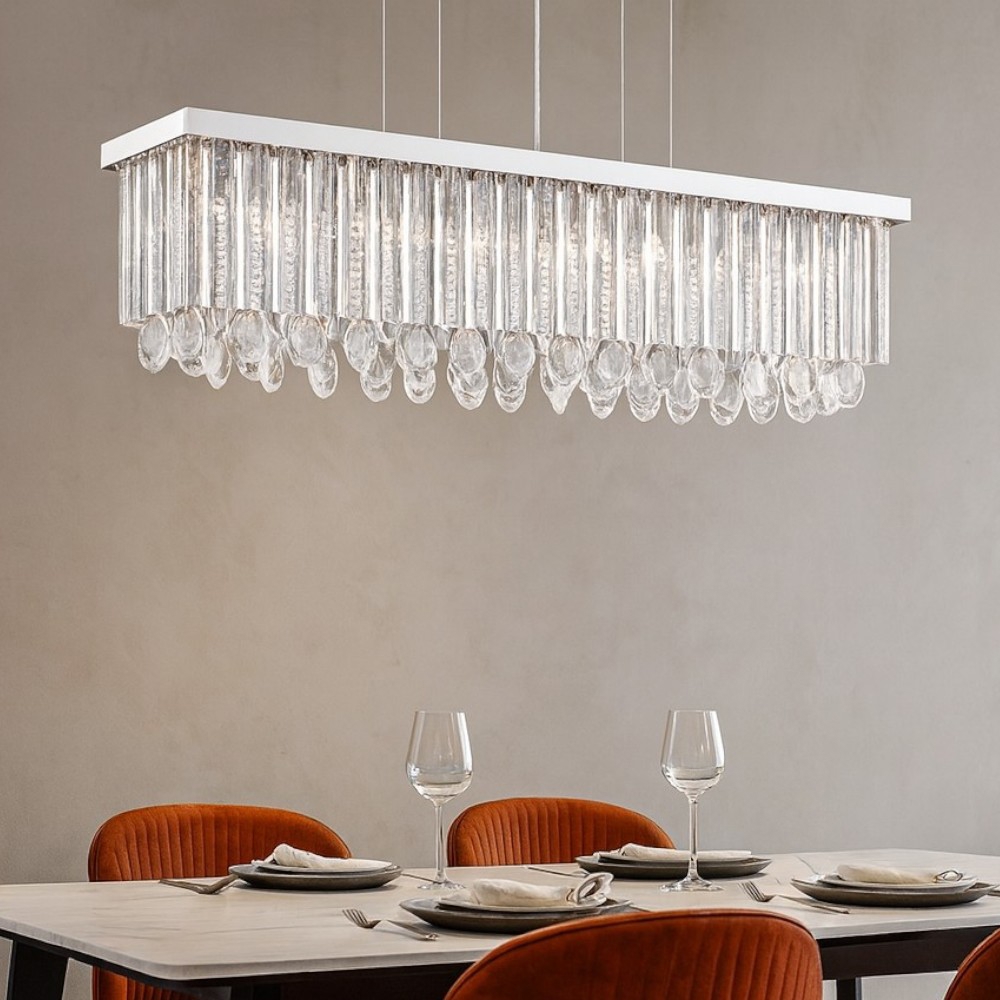 Questo lampadario serie Calaonda di Eglo con cristalli è la quintessenza dell'eleganza contemporanea, progettato per trasformare un tavolo da salotto o l'area living in un luogo di incontro raffinato e luminoso. Ogni dettaglio, dai cristalli pendenti al metallo cromato, è una celebrazione del design moderno, creando una sinfonia visiva che cattura l'attenzione senza sopraffare l'ambiente. Questo lampadario non è solo un elemento funzionale, ma un'affermazione di stile che promette di illuminare cene e serate con una luce che non passa inosservata. Ideale per un salotto moderno, dove la luce si fonde con il design per creare un'atmosfera accogliente ed elegante.