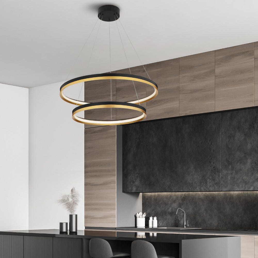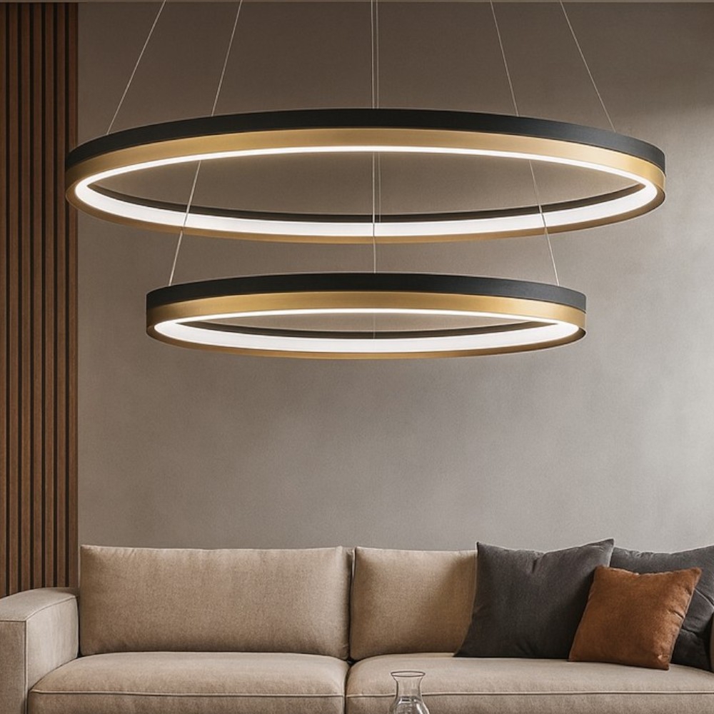 Lampadario per camera da letto cerchio nero oro 33w 3000k dimmerabile