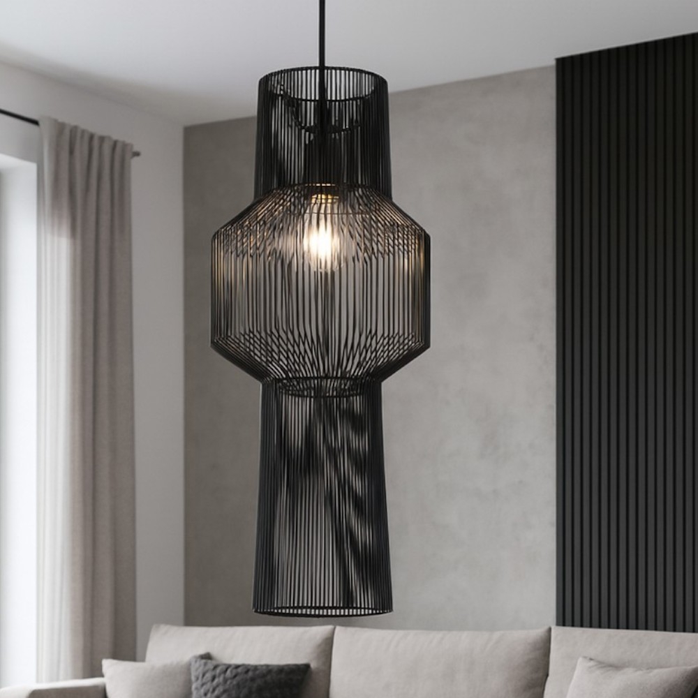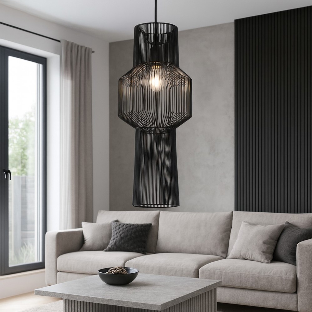 Ideal lux minor linear sp4 lampadario nero per soggiorno moderno