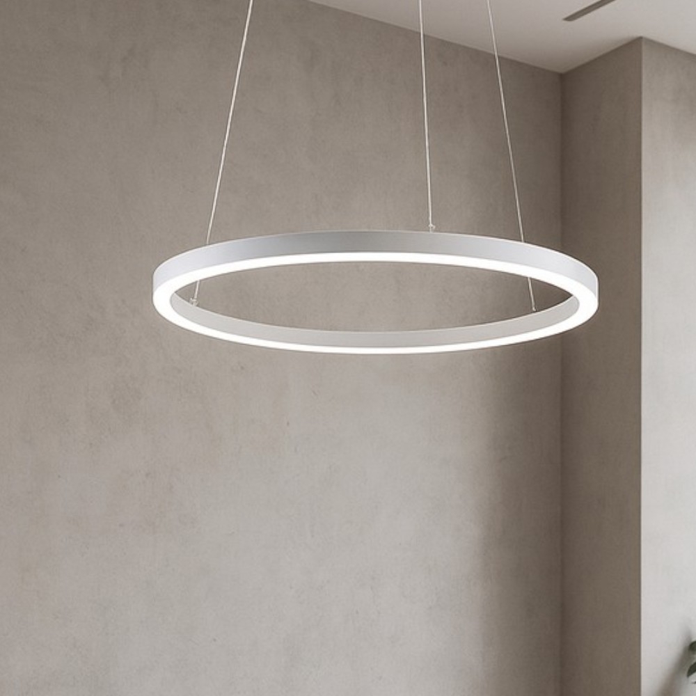 Lampadario moderno led 38w 3000k dimmerabile hurricane vivida cerchio bianco