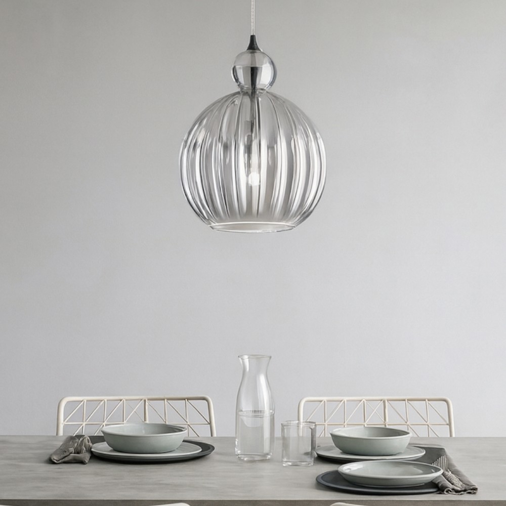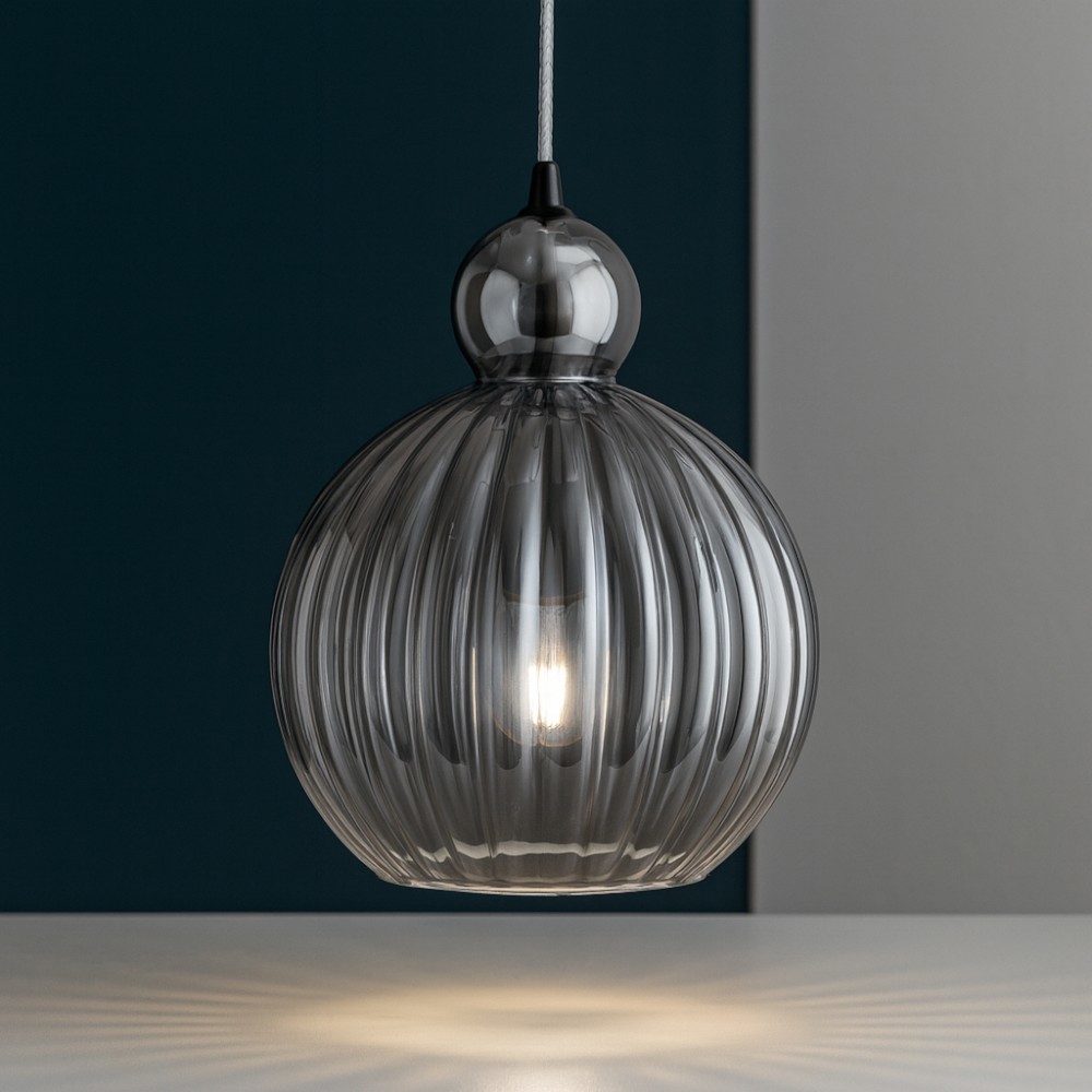 Lampada a sospensione 25cm sfera di vetro fume specchiato perenz lia