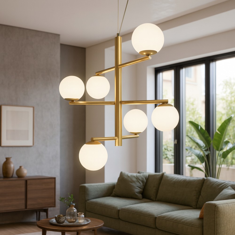 Ondaluce so gizah lampadario moderno nero da soggiorno 6 luci vetri fume
